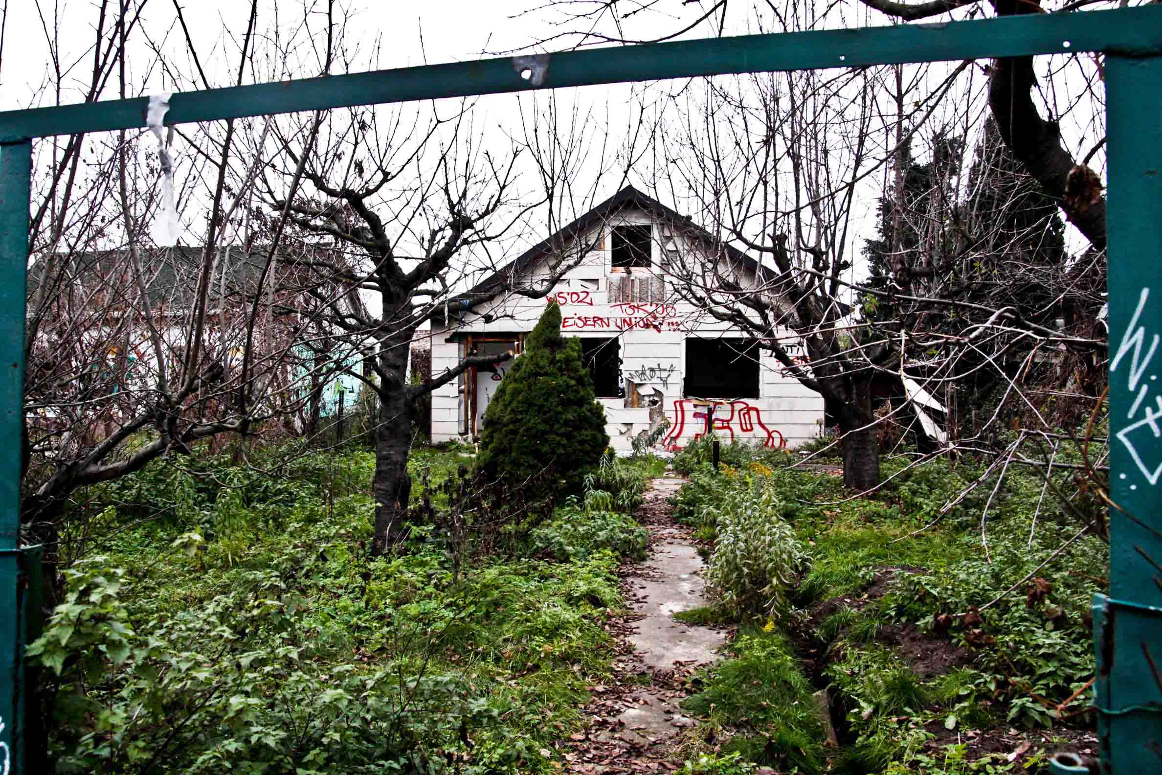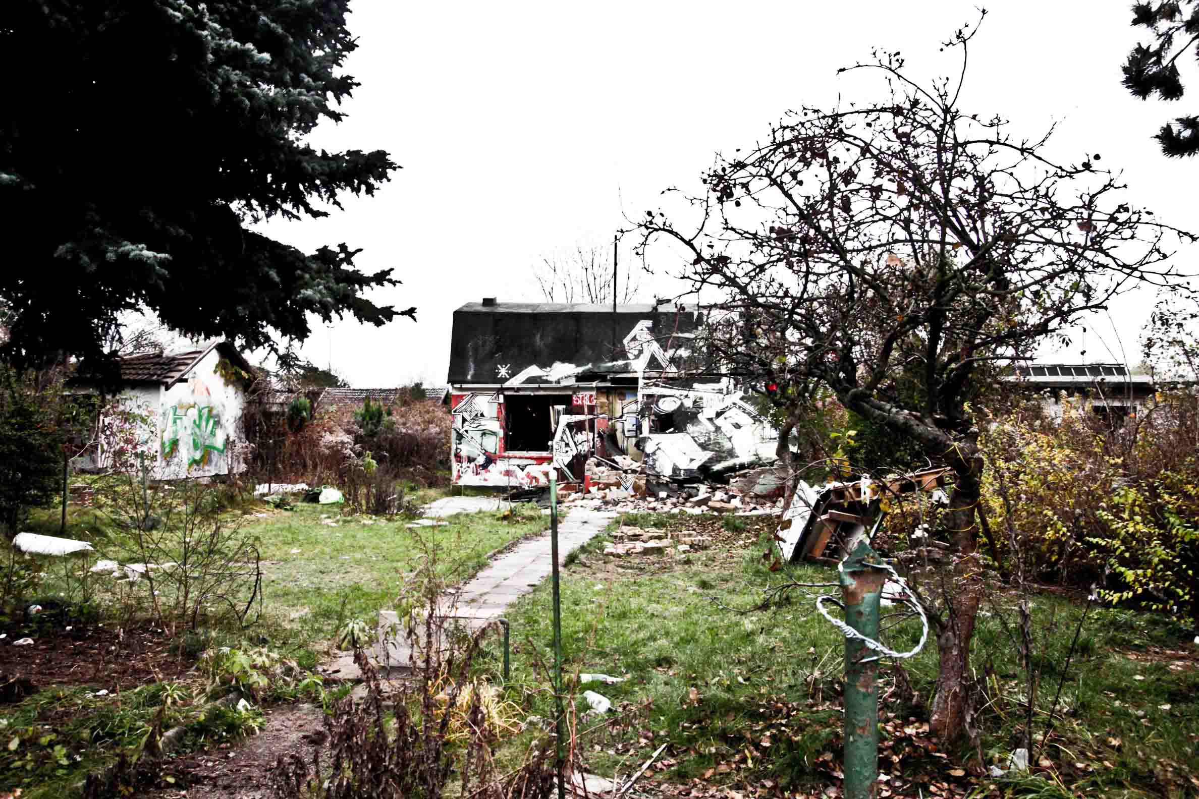 In June 2008, with the excuse of the construction of the A100 Highway, the people that was living in these two colonies, mostly elderly, were expelled, forcing them to move to apartments in large buildings in GroupiusStadt, south of Britz. These colonies were, for 4 years in total abandonment, without any use, vegetation ate houses, vandals destroy the structure, the walls served as a canvas for graffiti artists, also held numerous clandestine parties “Raves Parties”, and others houses were occupied by homeless people that saw in this four walls their refuge.