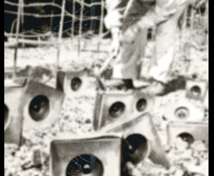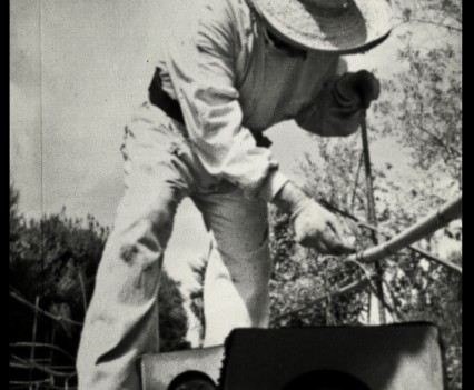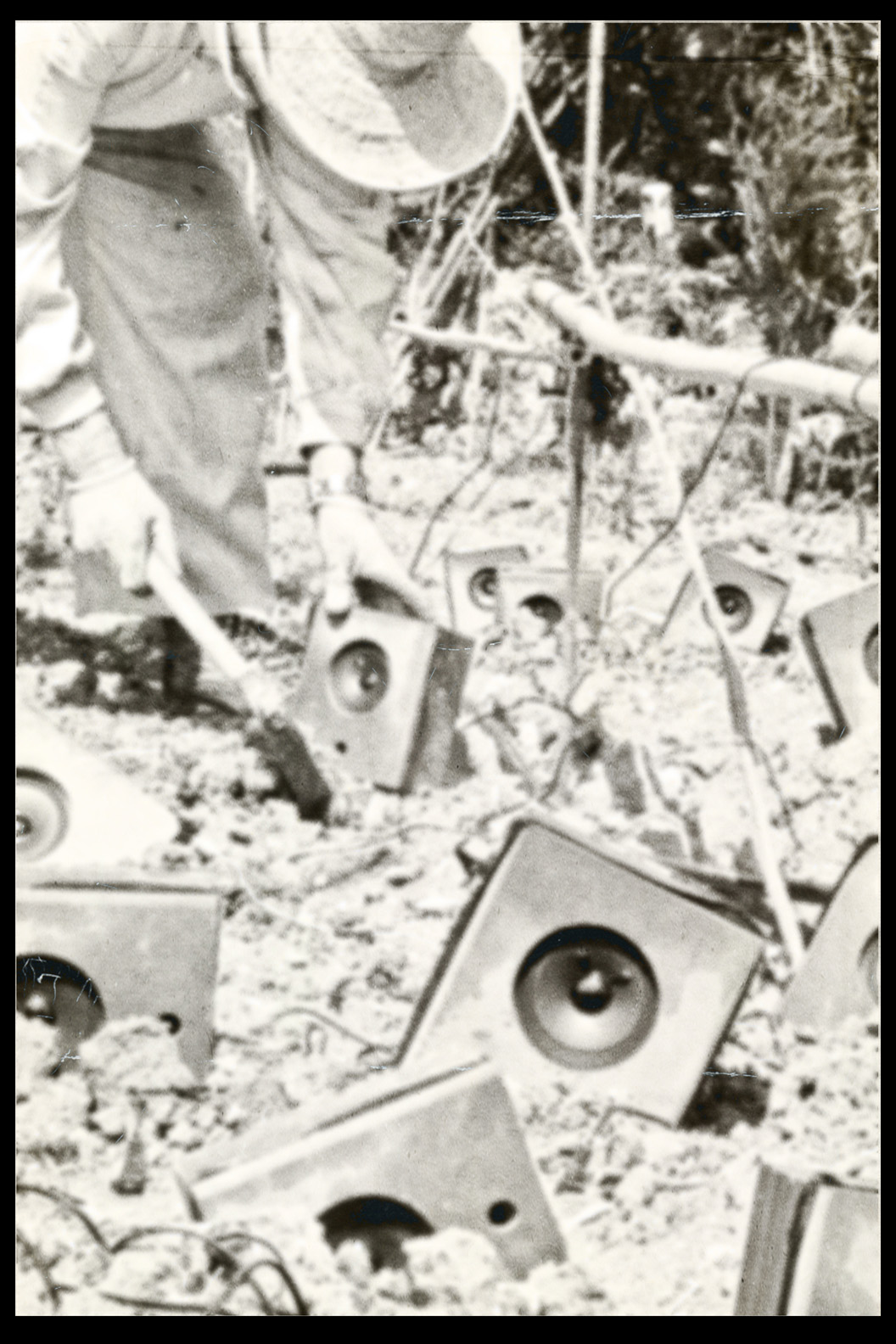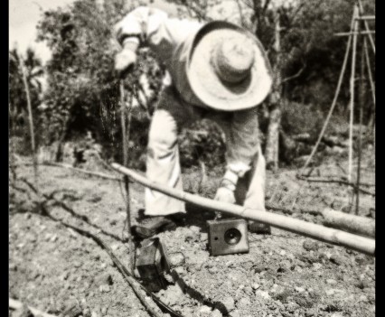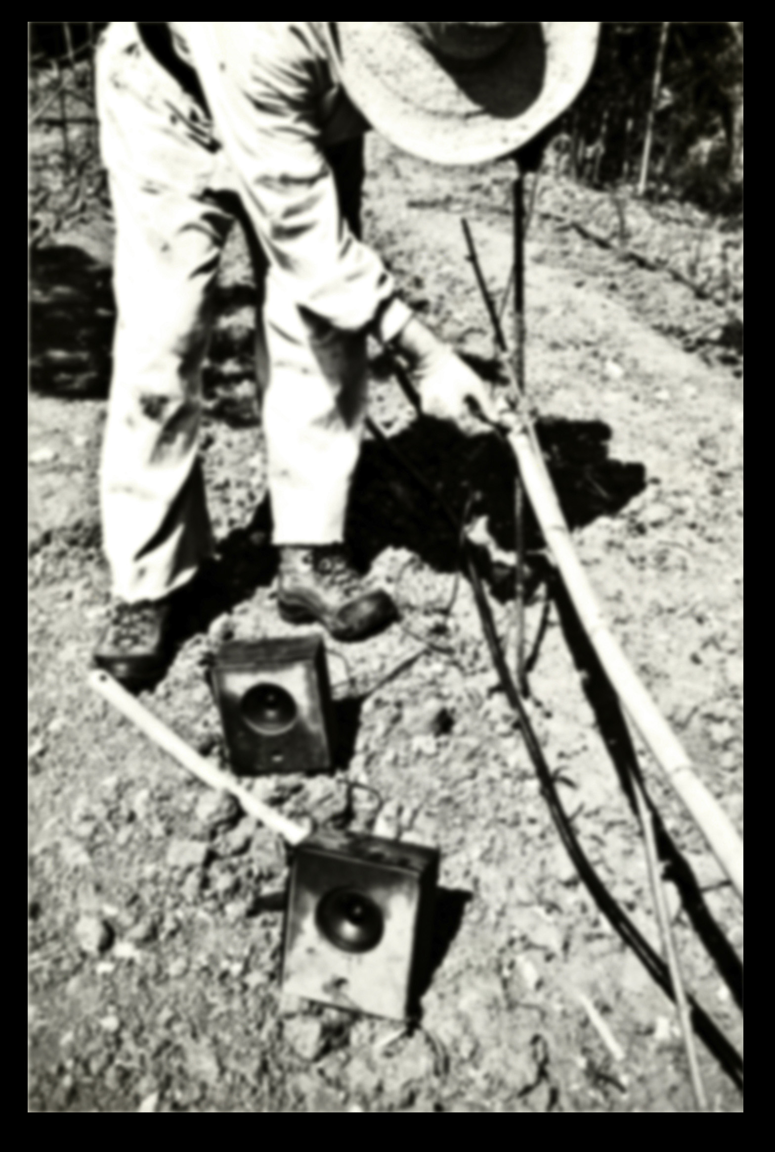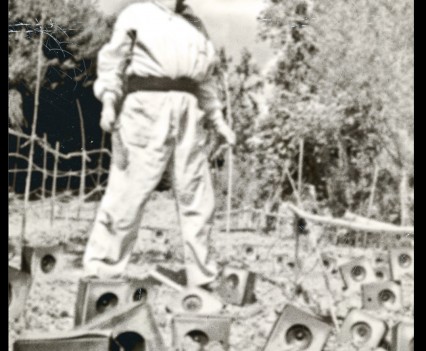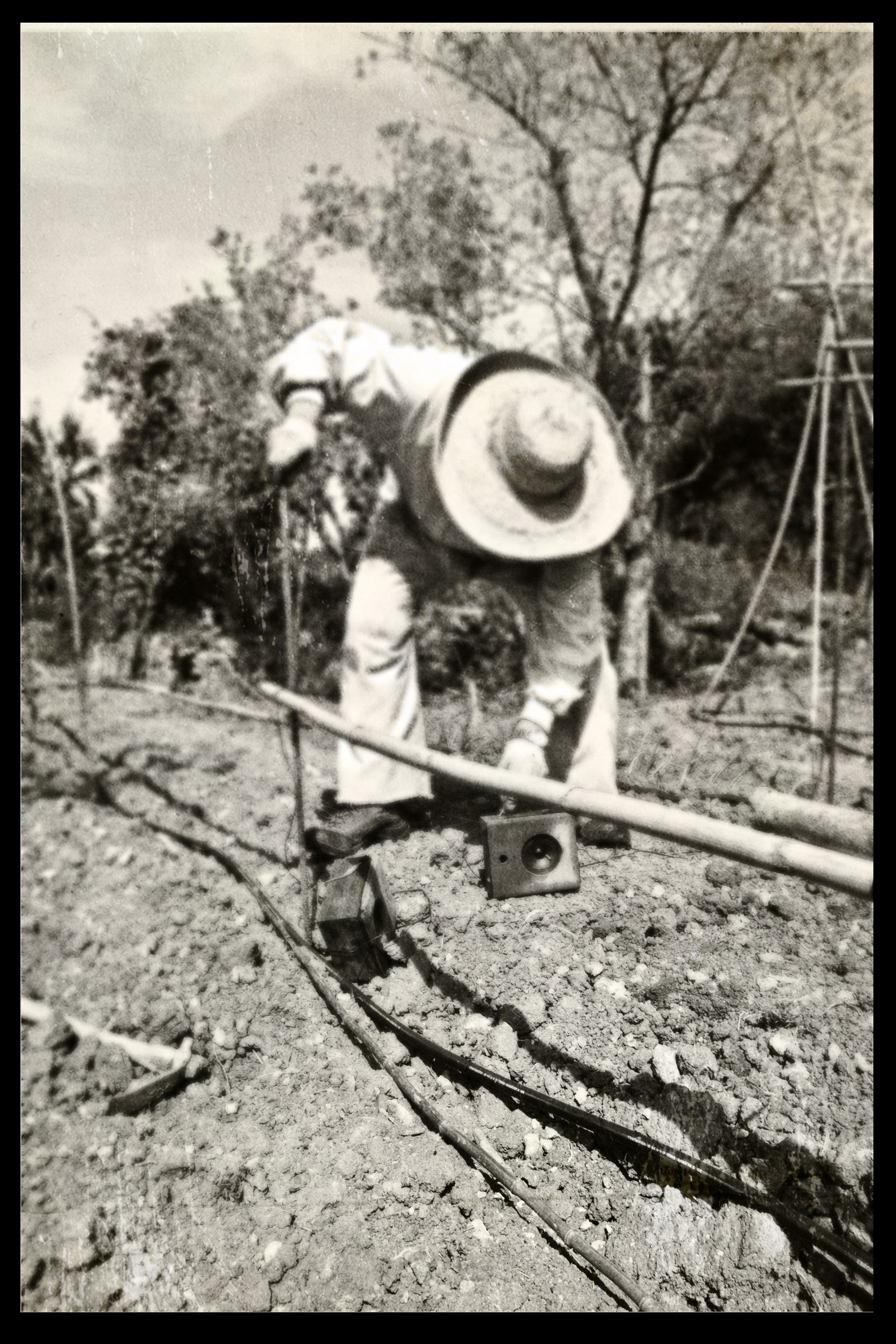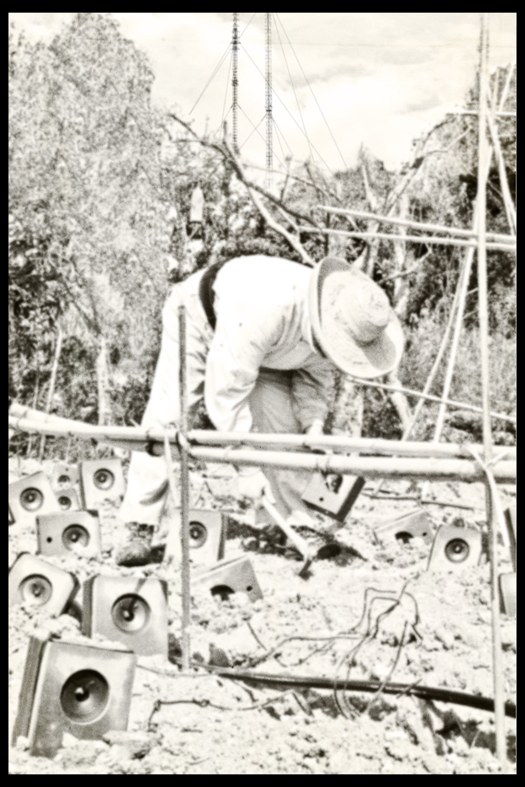 Photos founded in the file “8722. Expansion of the Communication Network” on Bushkrug. We can see Stanislav Dravoneg cultivating speakers in a orchard, and we guess that is in nearby of the transmitter antenna Britz, because it sees on the horizon. Probably was hacking the broadcast signal of the American sector, according to the documents that we found.