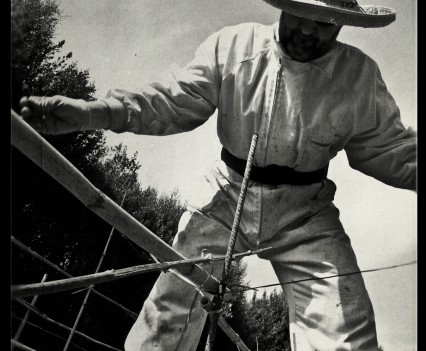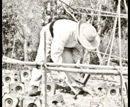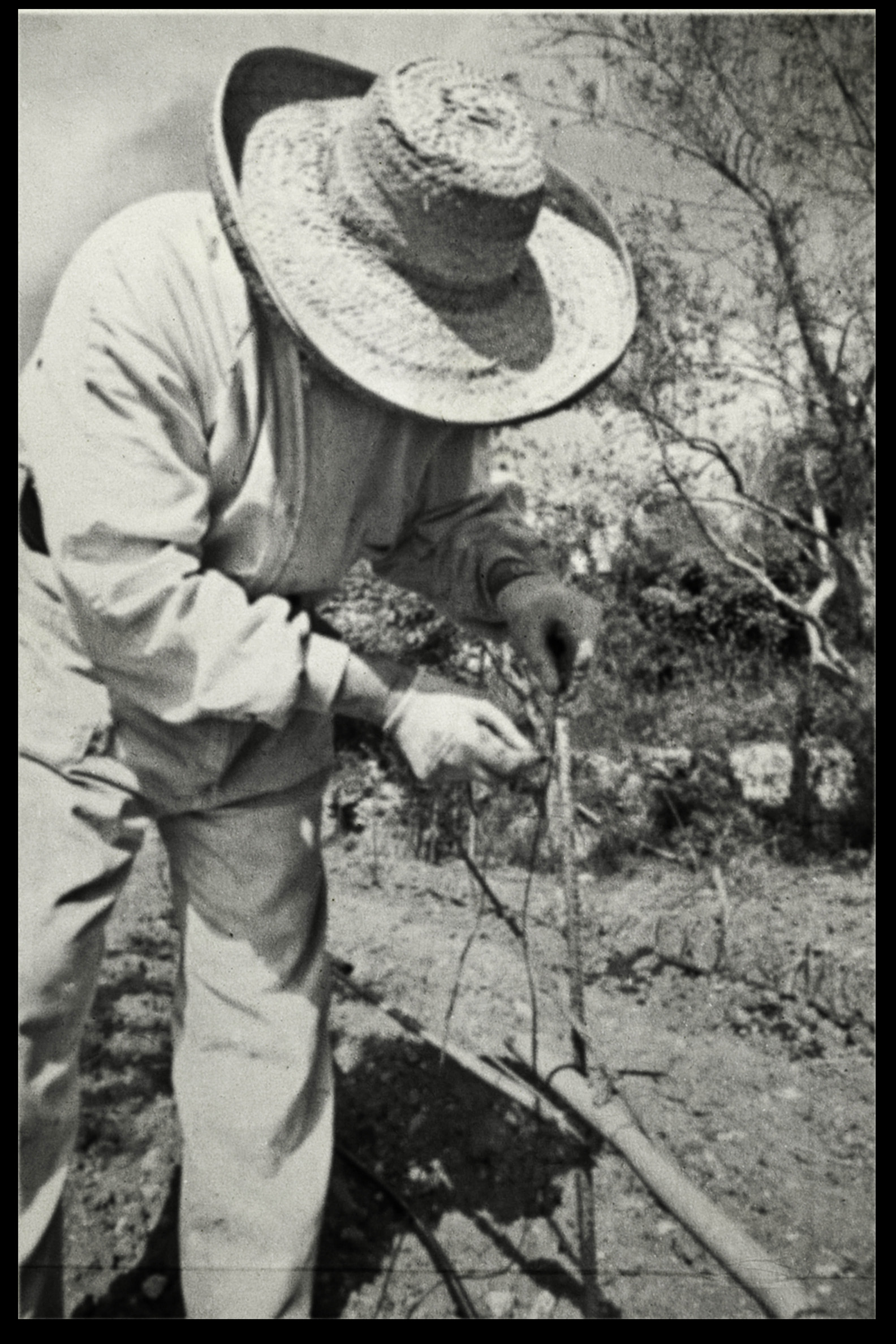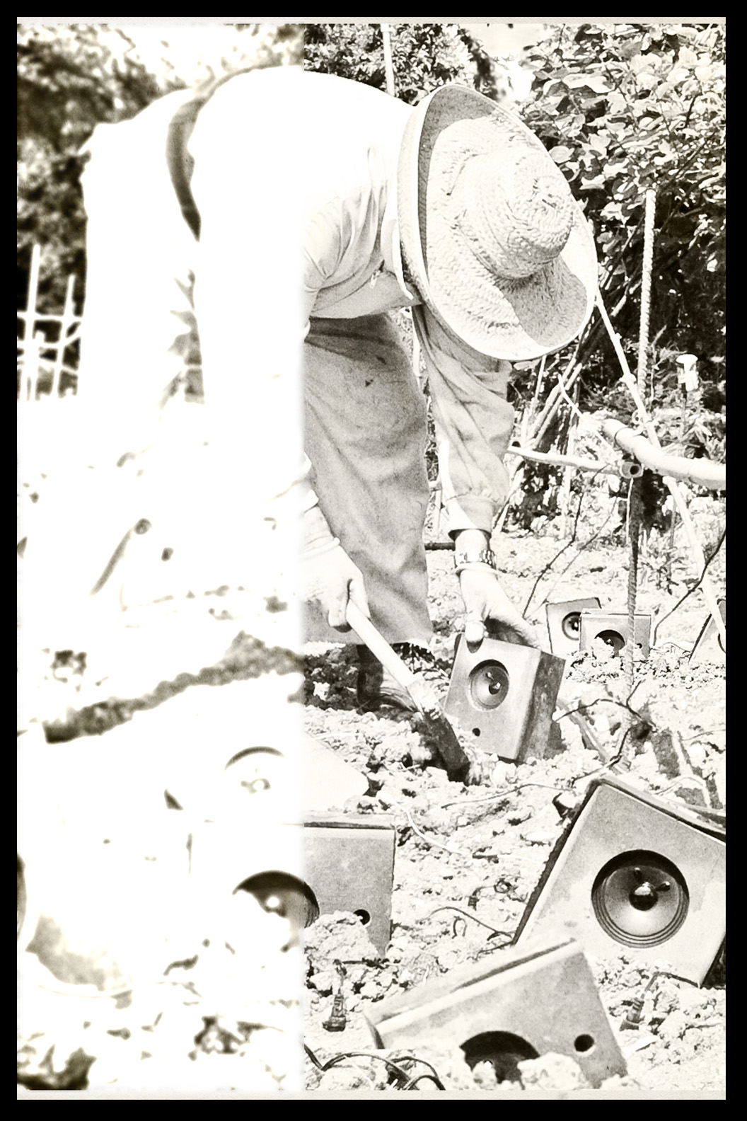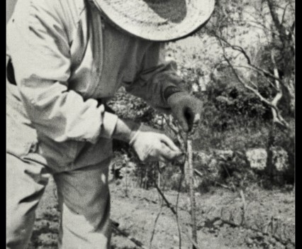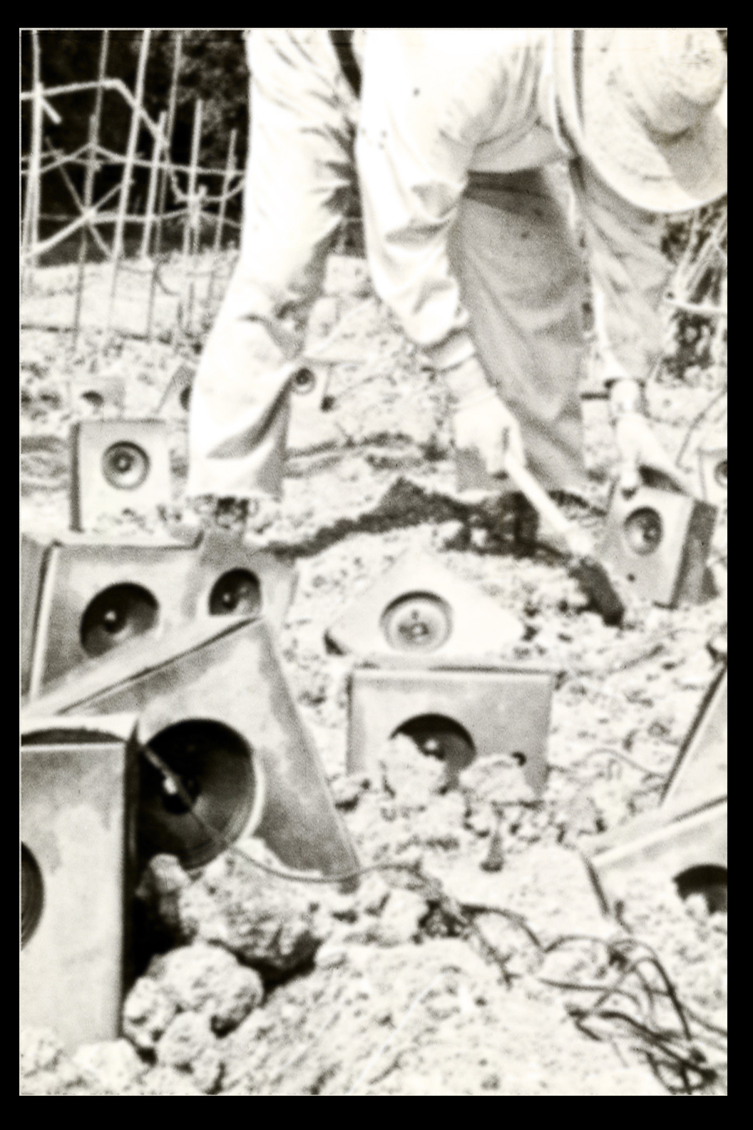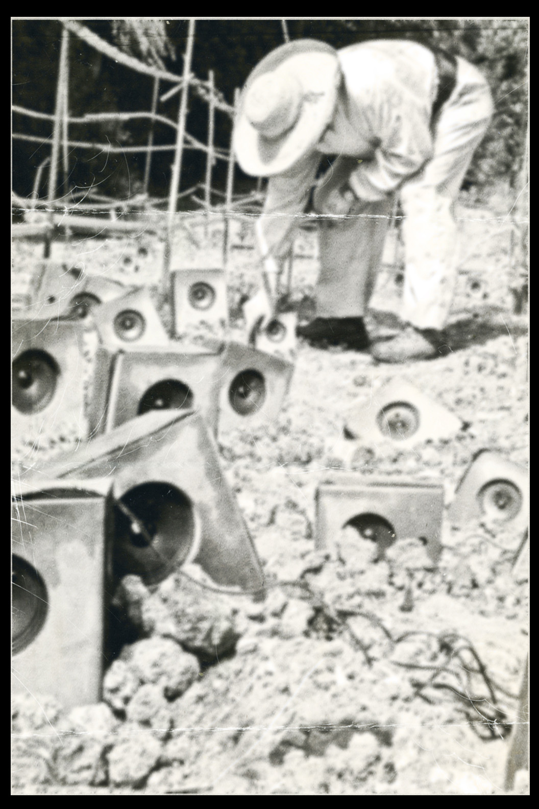 Photos founded in the file “8722. Expansion of the Communication Network” on Bushkrug. We can see Stanislav Dravoneg cultivating speakers in a orchard, and we guess that is in nearby of the transmitter antenna Britz, because it sees on the horizon. Probably was hacking the broadcast signal of the American sector, according to the documents that we found.